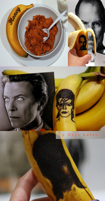 Estas bananas decoradas con imágenes de famosos no son idea de ningún chef, pero su creadora no tiene ningún reparo en comérselas una vez termina los diseños.